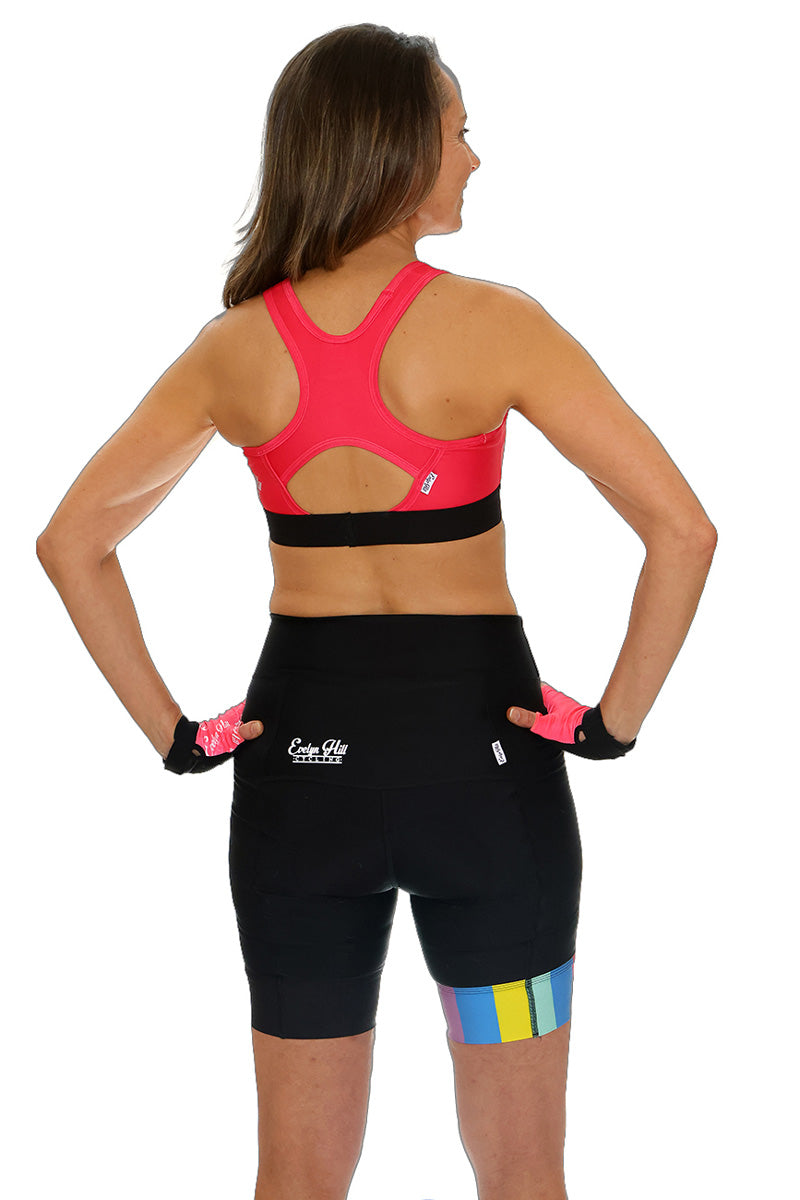 Add a little fun in our bright and colorful bras. We weren't happy with the level of support we were getting and decided to create a sports bra that works on AND off of the bike. Whether you're running, riding, or just getting around town, our medium stretch Lycra sports bra provides the right amount of support.