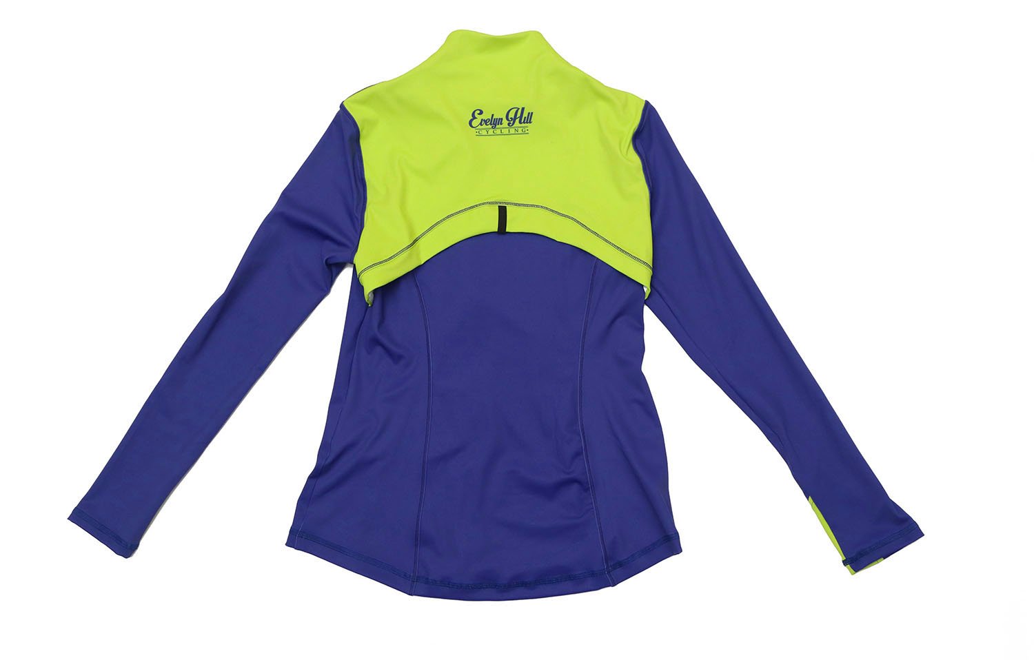 Our Electric Jacket is part of our new Electric collection. Be seen and still look great in our bold lime/blue colors. Evelyn Hill Cycling's NEW jacket material is known as Venture+ and is highly breathable fabric that wears nicely all season long.