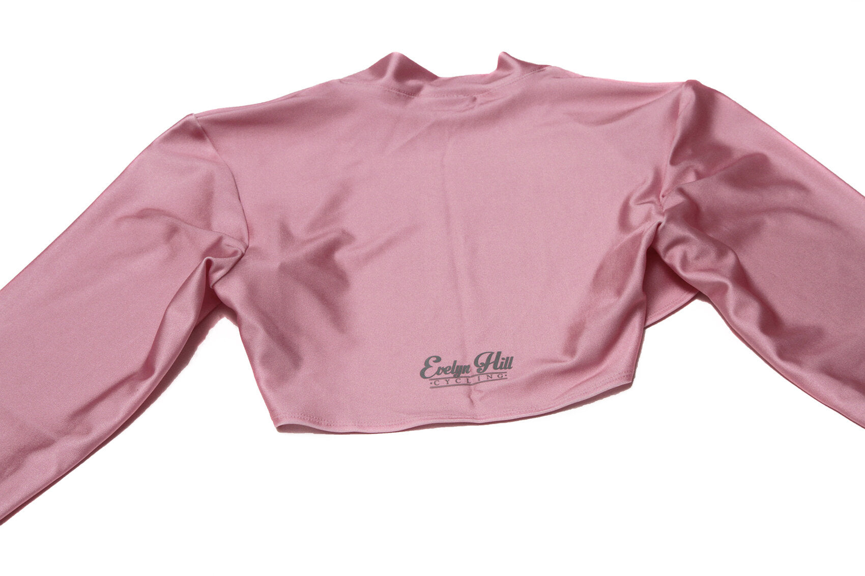 Everyone looks sweet in this lightweight silky pink top layer. This Bolero is made from soft- stretchy Lycra. Our Evelyn Hill Boleros are perfect transitional pieces both on and off of the bike. Wear them in place of arm warmers over our sleeveless jerseys or as an additional layer with our sleeved designs.